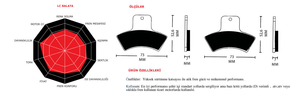 Kuba Linhai 200 ATV Fren Balatası Arka Gold